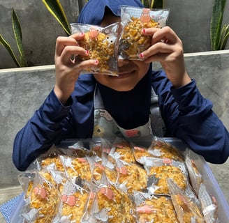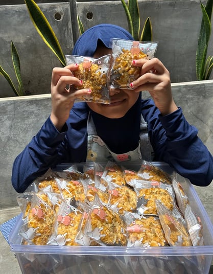 Cookies ini kami buat di rumah, dengan tangan kami sendiri. Aku belajar membuat cookies dari orang tua dan guru, mulai dari membaca resep, mencampur dan memanggang adonan. Rasanya spesial dan menyenangkan. Setiap gigitan penuh dengan kebahagian dan ide-ide seru.